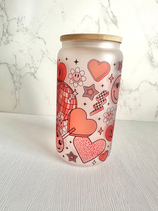 Heart and Smile 16 oz Frosted Glass Tumbler