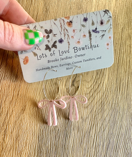 Light Pink Bow Hoop Earrings- Silver or Gold