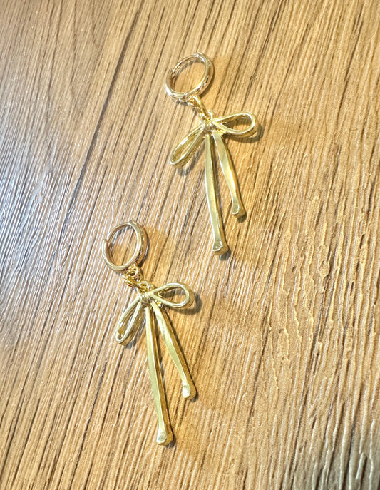 Striped Bow Gold Acylic Earrings