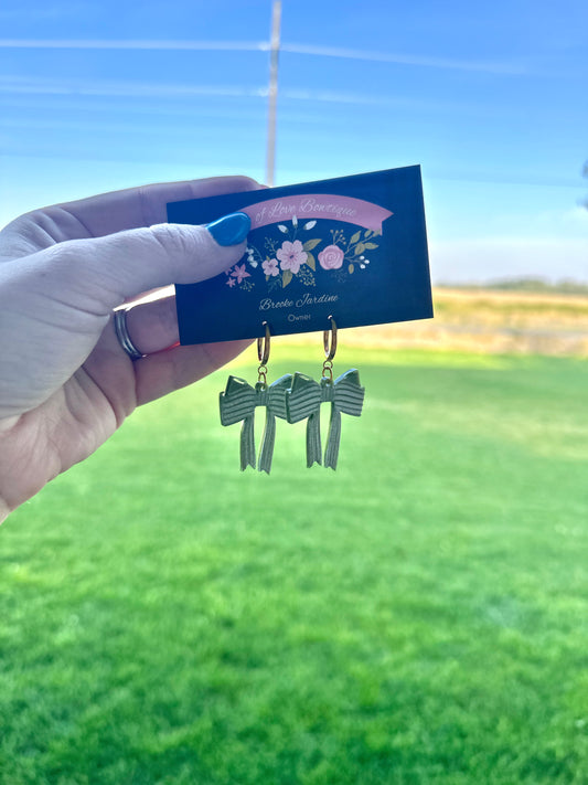 Striped Bow Moss Green Acylic Earrings