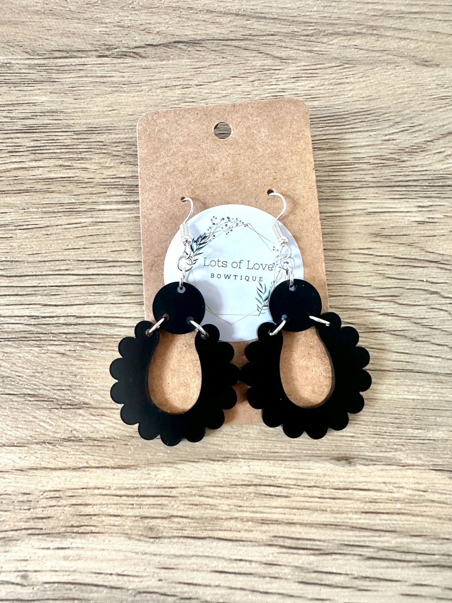 Black Matte Scalloped Drop Earrings