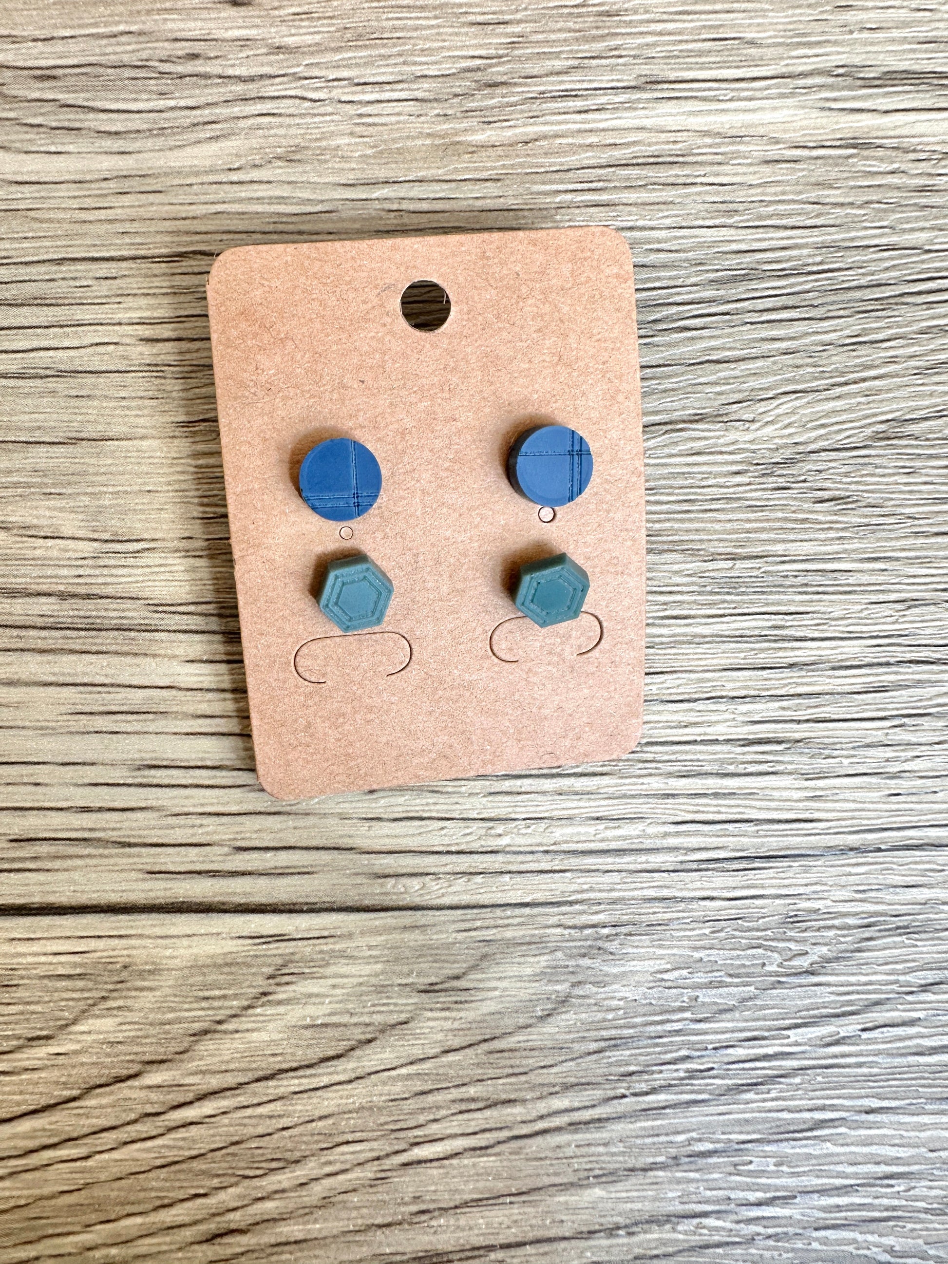 Blue Circle Green Hexagon Stud Set