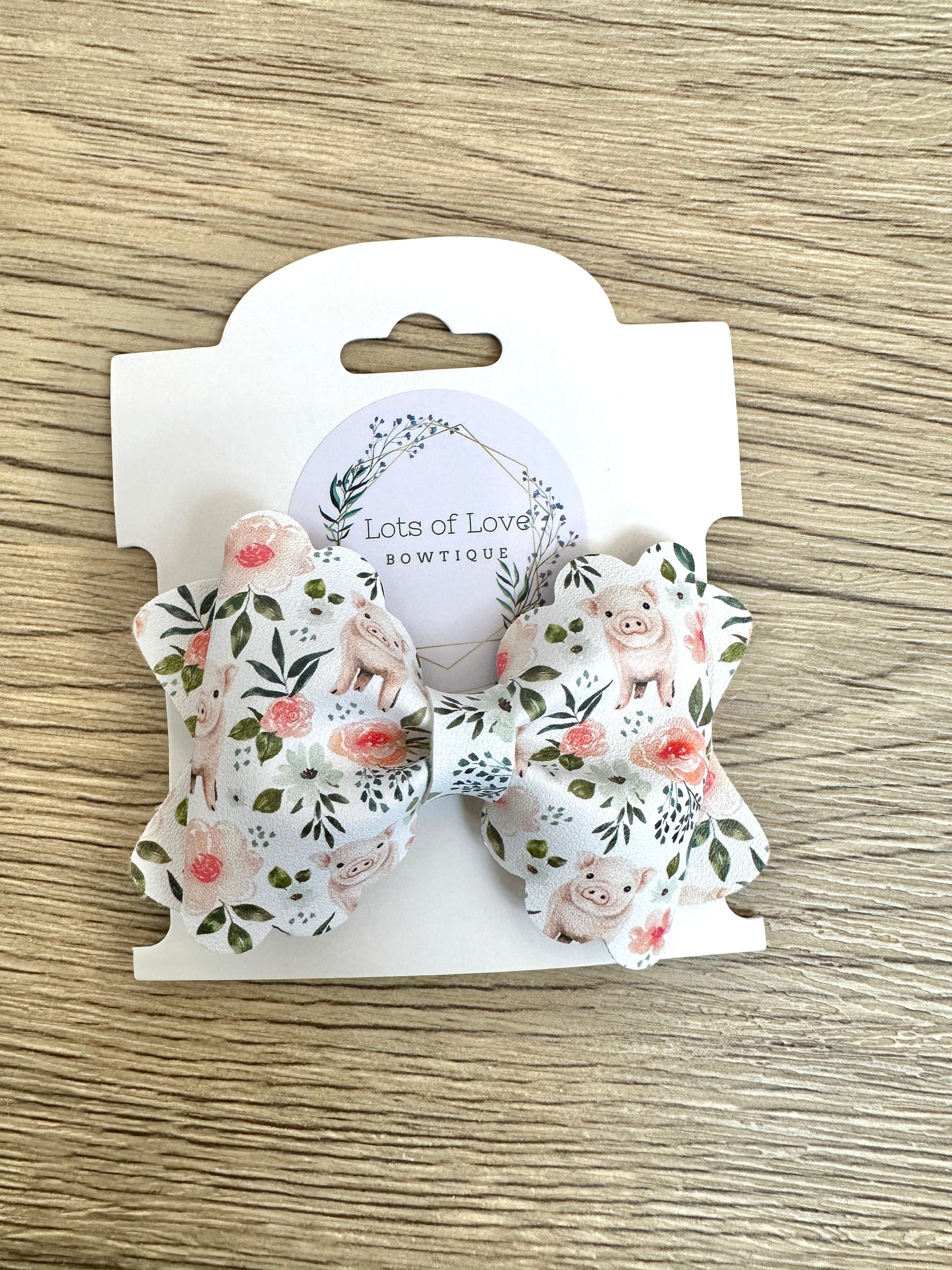 3" scalloped edge bow perfect for girls or can be worn as a bow tie.
