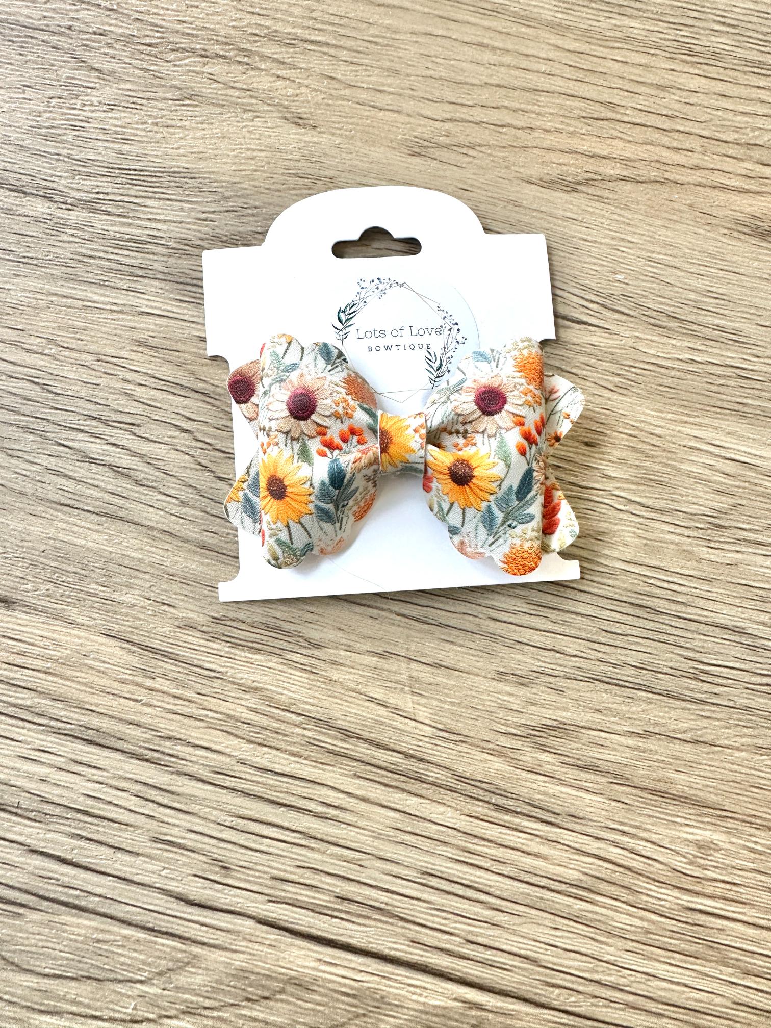 Light Sunflower Faux Embroidered Grace Bow