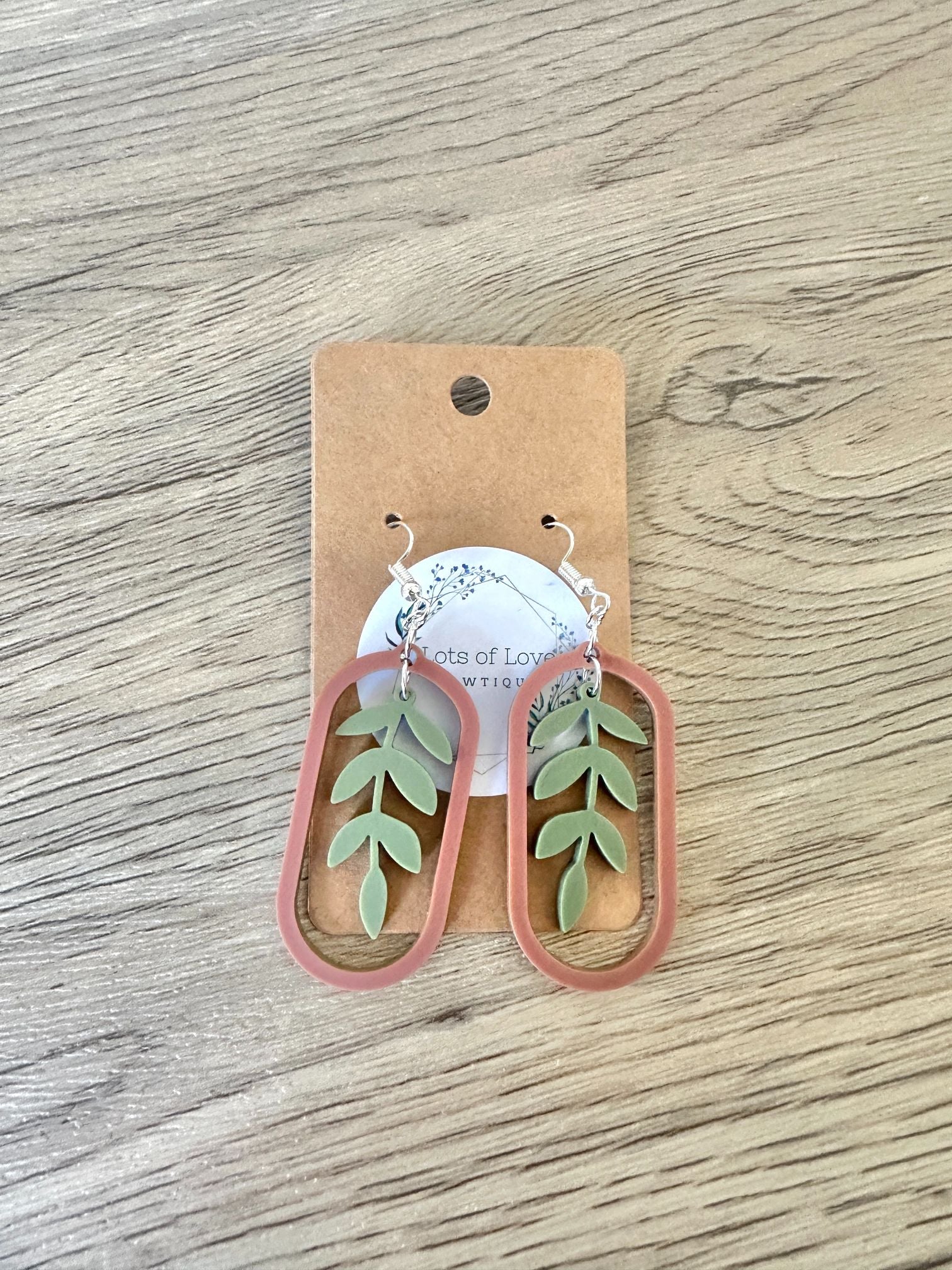 Matte Olive and Rust Leaf Hoop Earrings