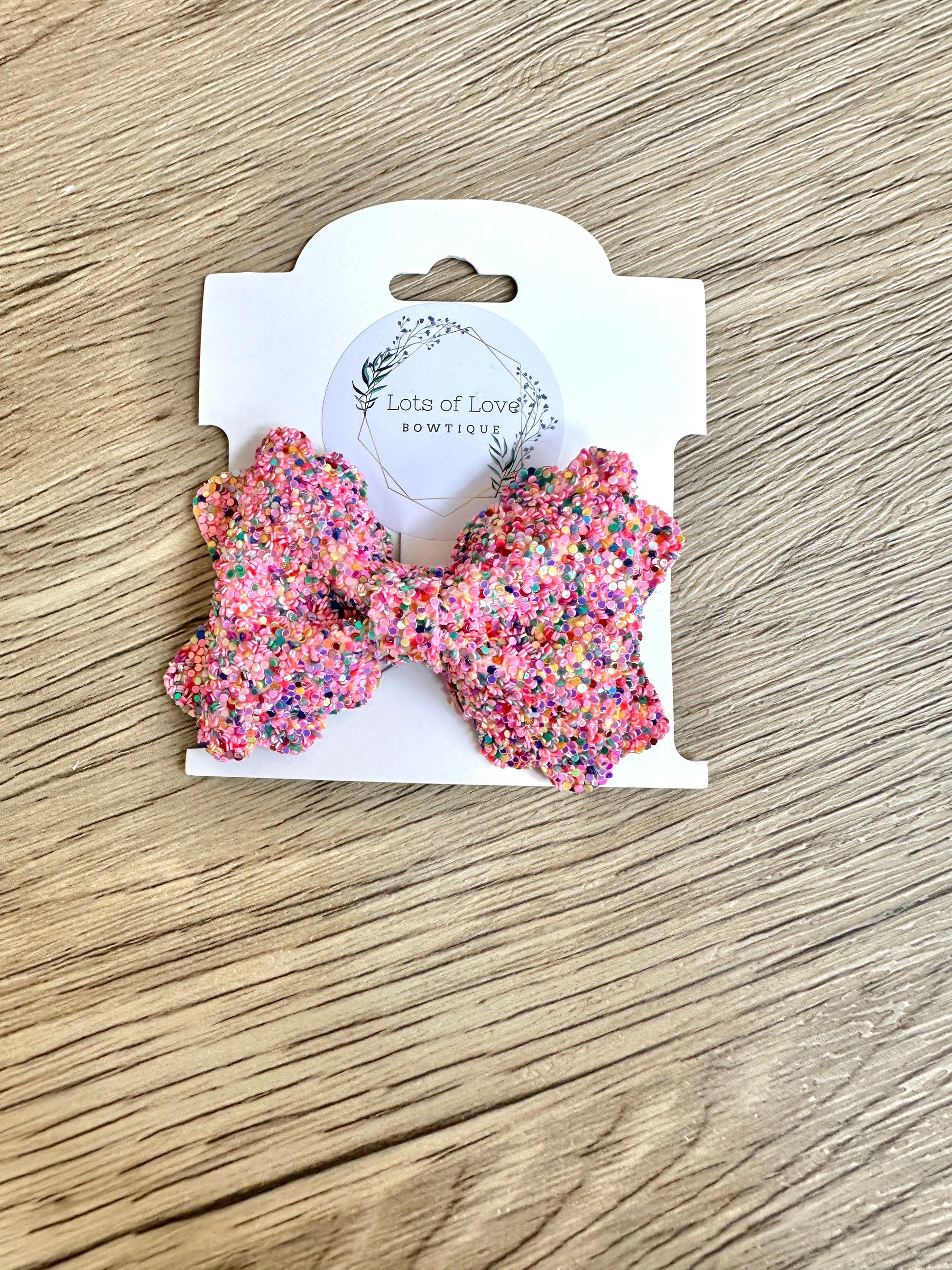 3" scalloped edge bow perfect for girls or can be worn as a bow tie.
