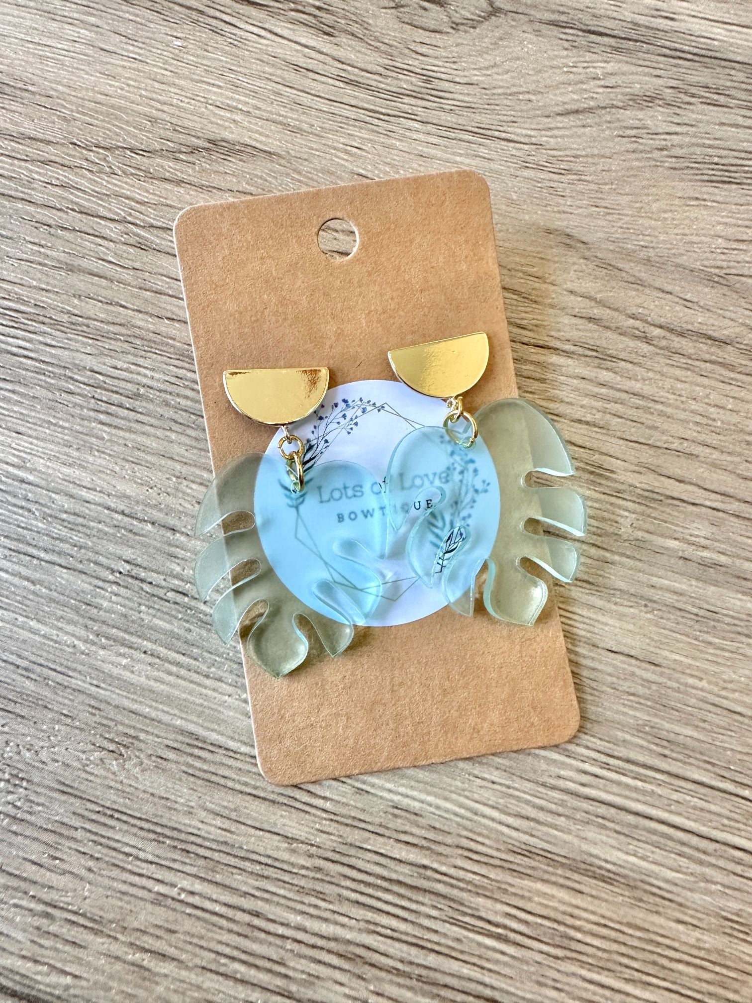 Sea Glass Monstera Gold Half Circle Stud Drop Earrings