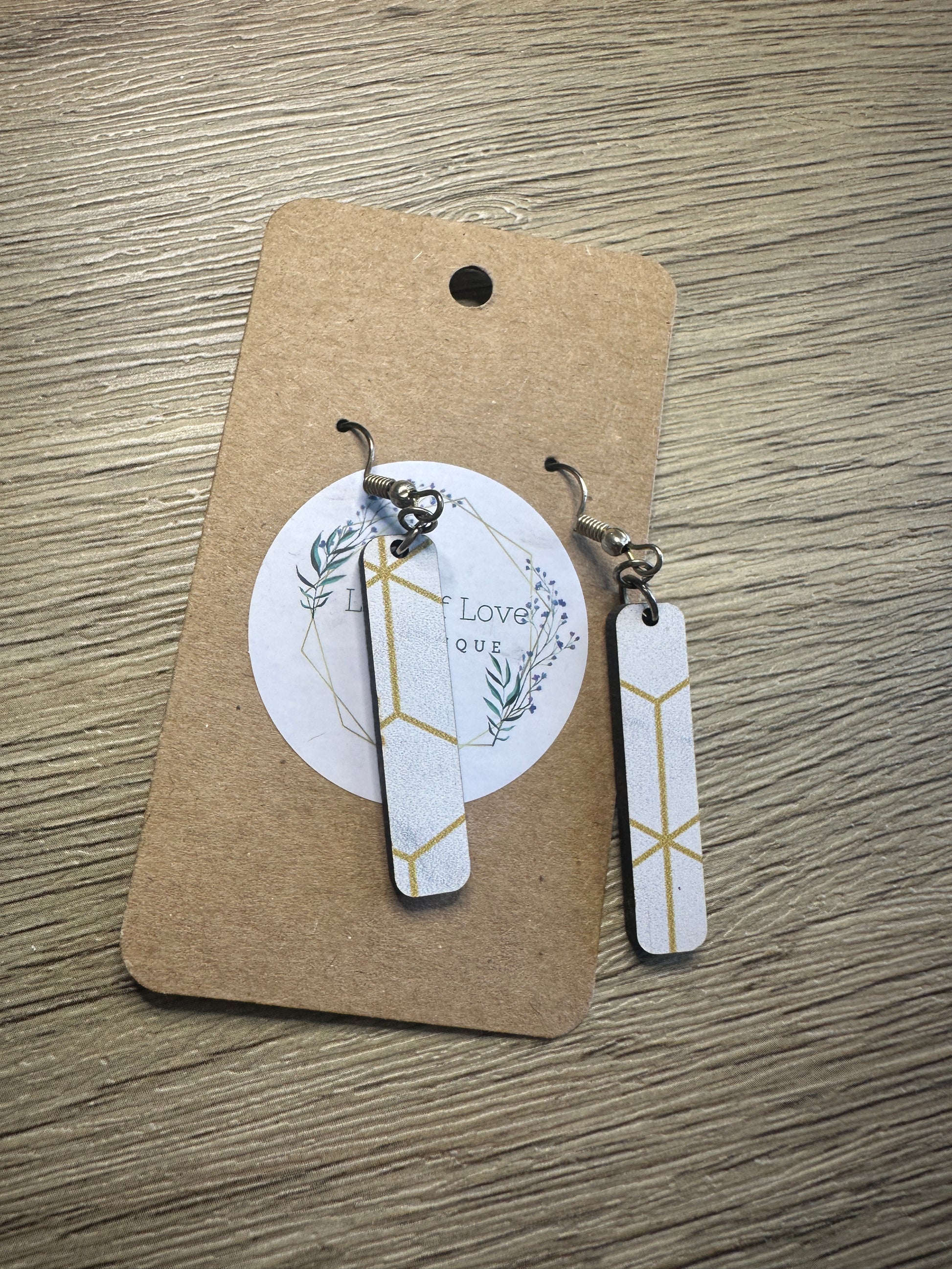 Mini White and Gold Marble Bar Earrings